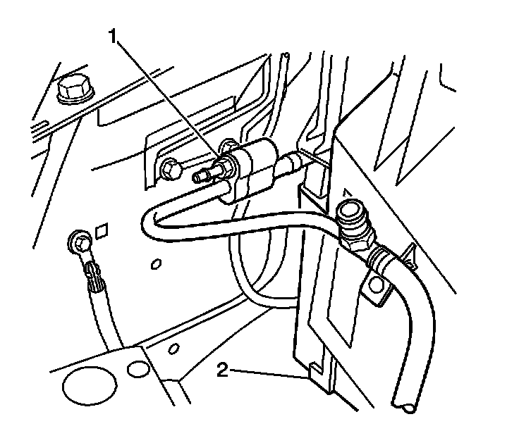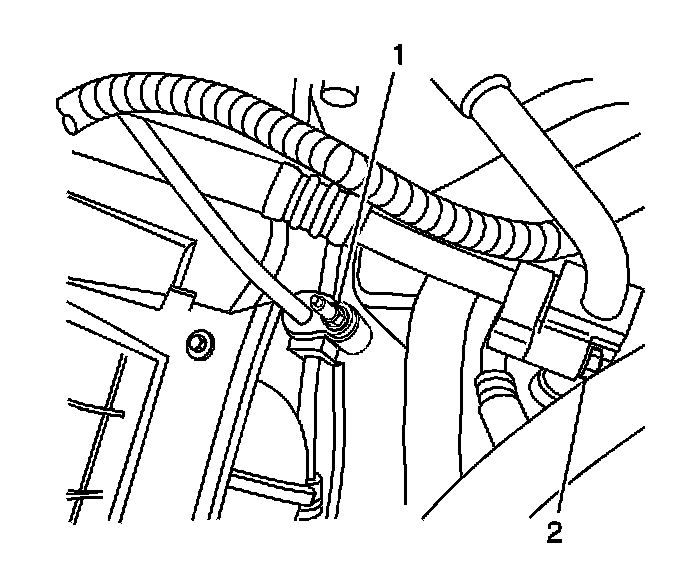 5. Remove the evaporator inlet hose nut (1) from the front evaporator tube hose.