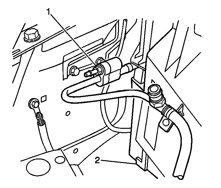 3. Remove the evaporator inlet hose nut (1) from the evaporator.
