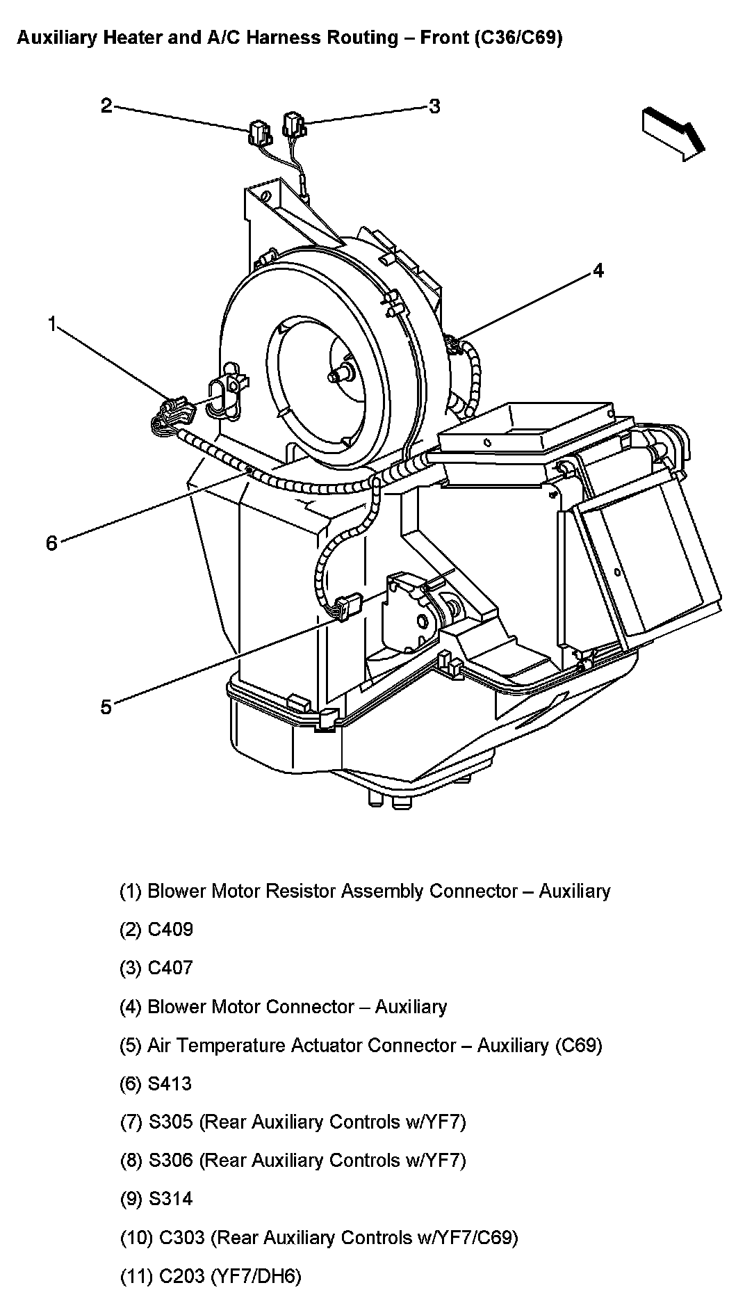Auxiliary Heater And A/C Harness Routing - Front (With RPO Code C36/C69):