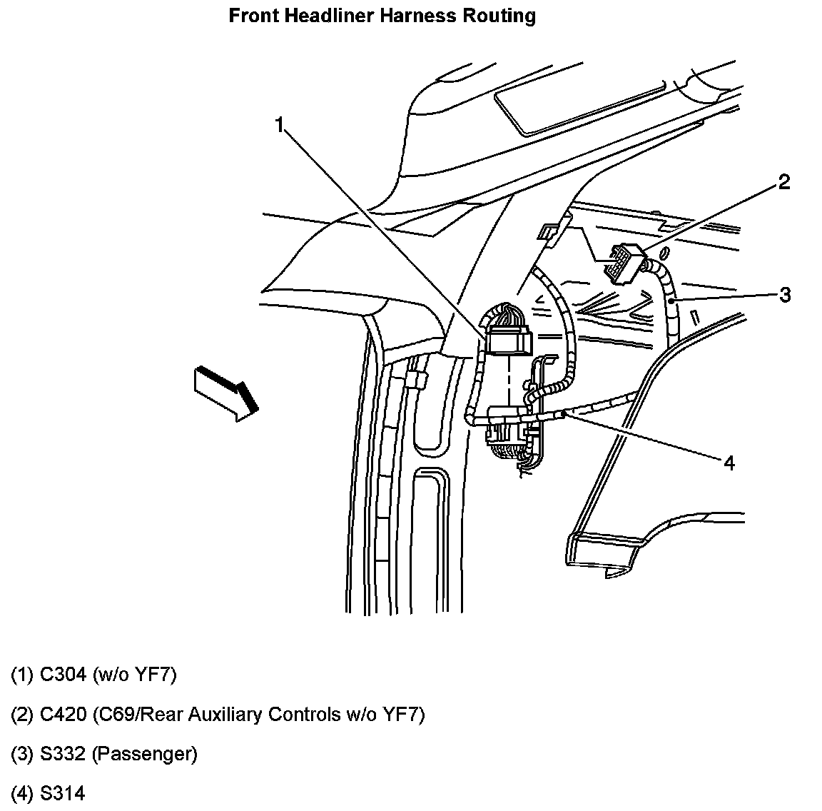 Front Headliner Harness Routing: