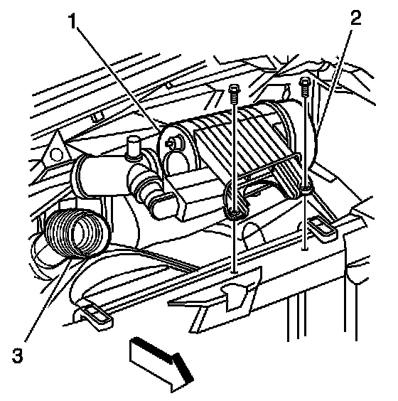 1. Loosen the clamp and separate the air cleaner resonator outlet duct (1) from the mass air flow/intake air temperature (MAF/IAT) sensor assembly.