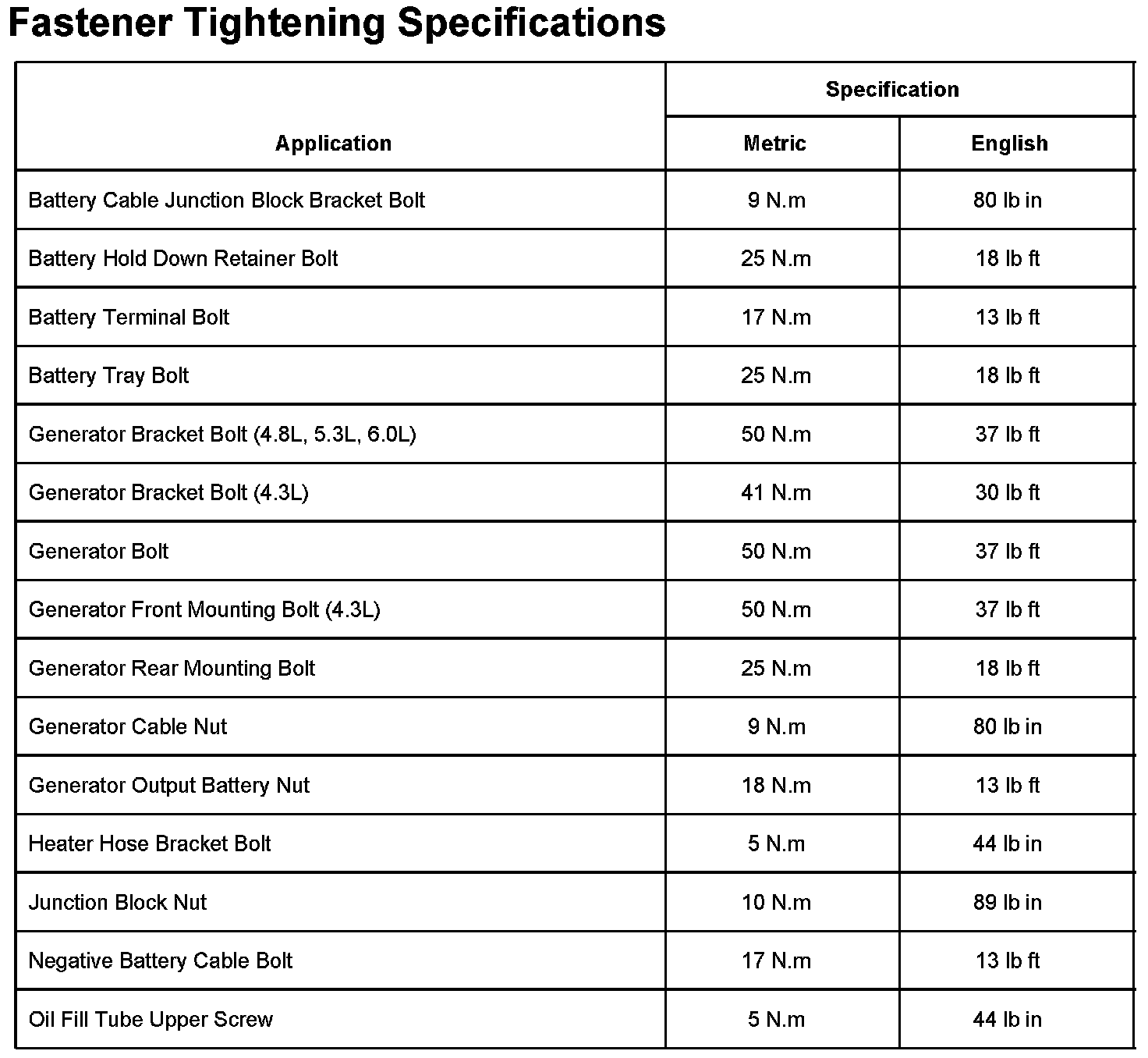 Fastener Tightening Specifications Part 1: