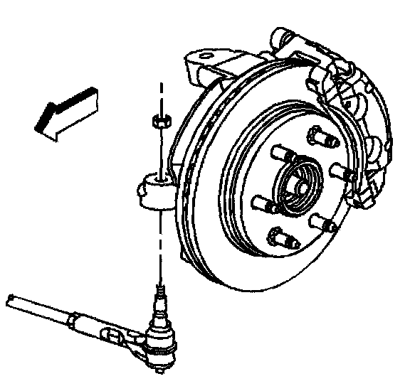 6. Remove the outer tie rod to steering knuckle retaining nut.