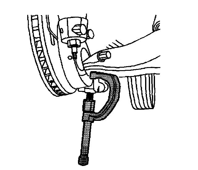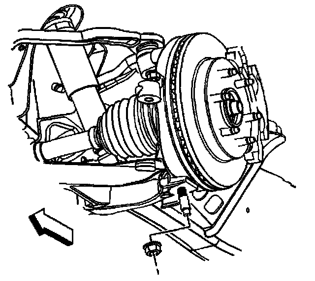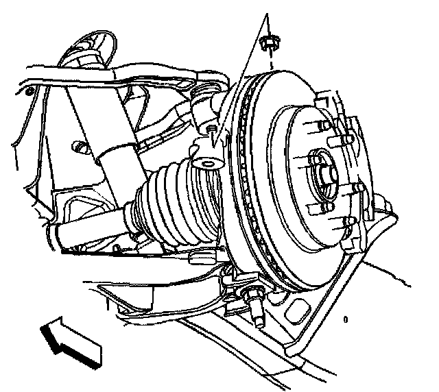 8. Remove the brake hose bracket retaining bolt from the steering knuckle.