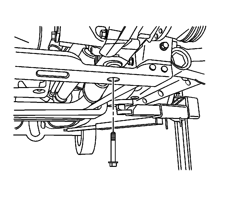 7. Install the engine crossmember bolt to the left side lower control arm bracket.
