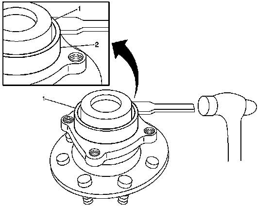 ^ If a hub and bearing assembly DOES NOT have the spanner nut (2), then the hub and bearing assembly must be replaced. Replacement hub and bearing assemblies do NOT need to be inspected. Therefore, do NOT remove the dust cap on a replacement assembly. Proceed to Step 15 after obtaining a new hub and bearing assembly.