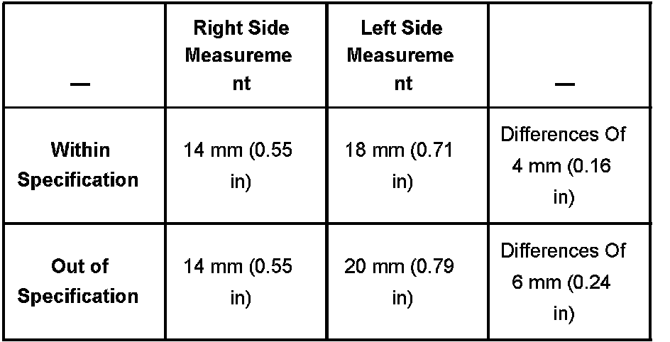 Side to side measurement should not exceed 4 mm (0.16 in). See the chart shown.