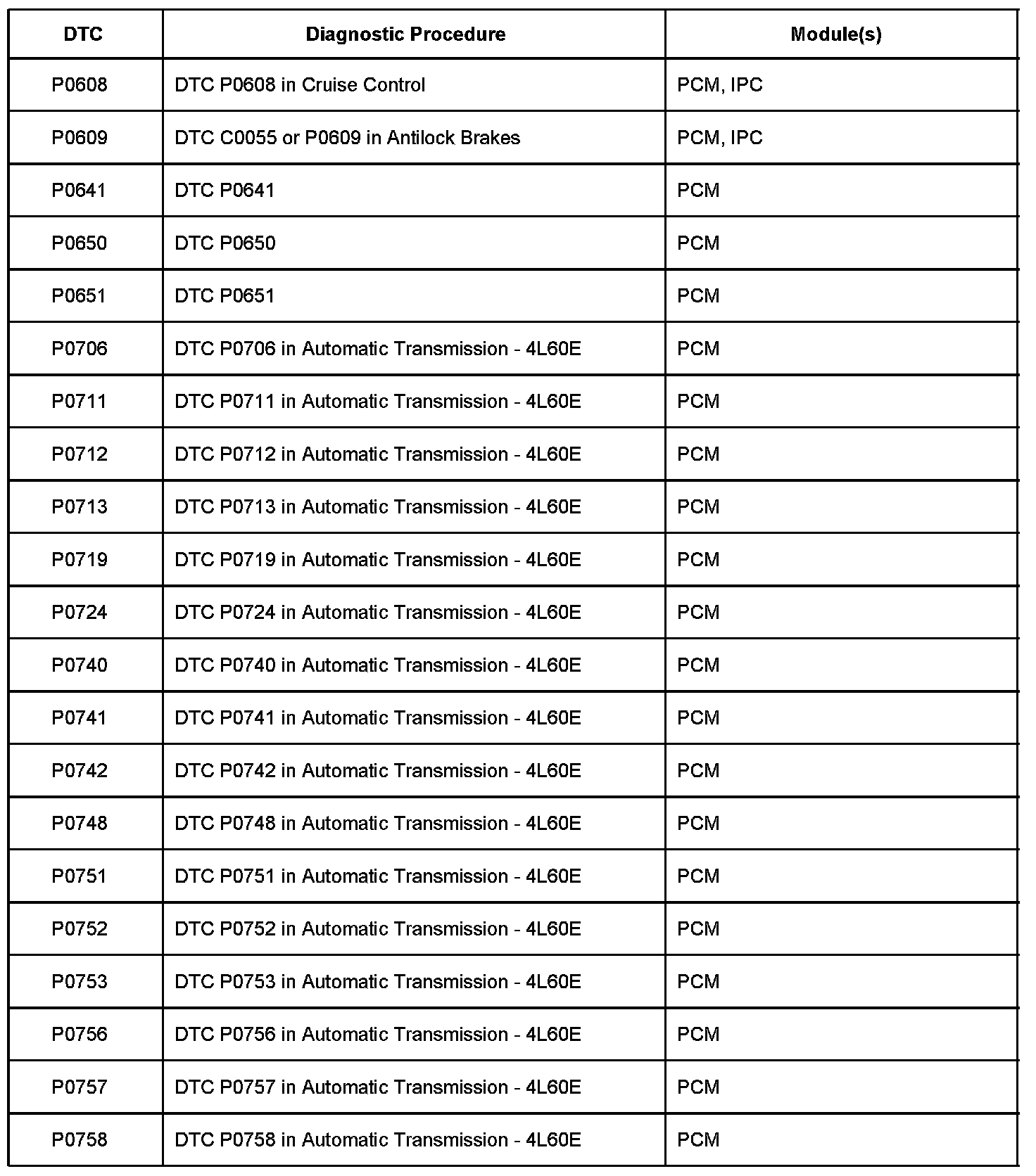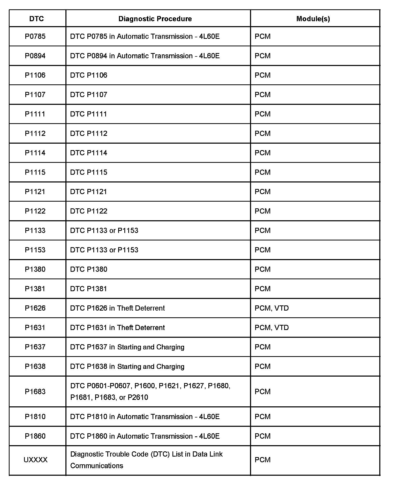 A L L Diagnostic Trouble Codes ( DTC )