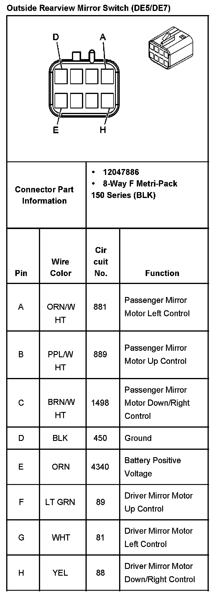 Outside Rearview Mirror - Switch With RPO Code DE5/DE7: