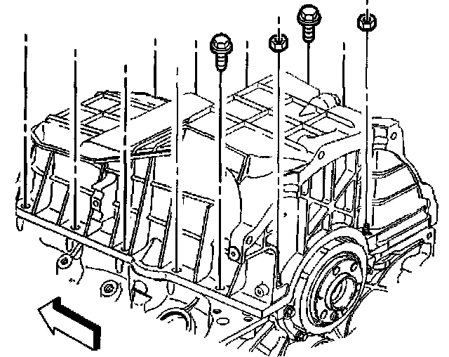 11. Remove the transmission to oil pan bolts.