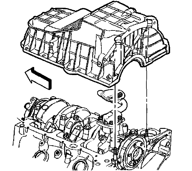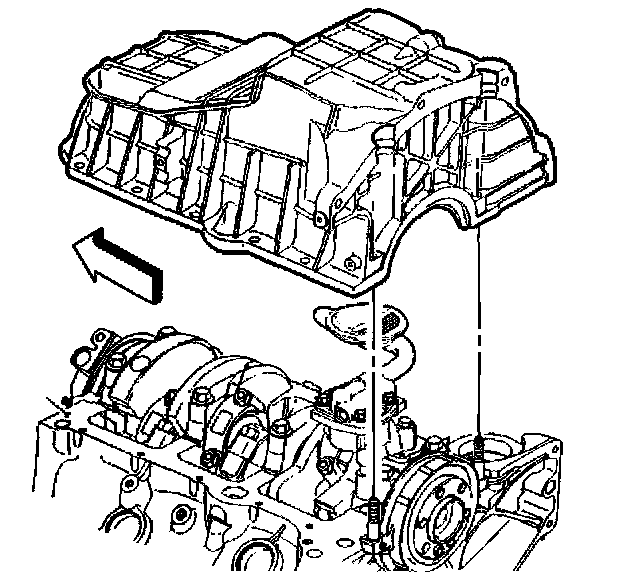 Notice: Any time the transmission and the engine oil pan are off of the engine at the same time, install the transmission before the oil pan. This is to allow for the proper oil pan alignment. Failure to achieve the correct oil pan alignment can result in transmission failure.