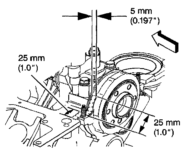 7. Measure the pan-to-transmission housing clearance using a feeler gage and a straight edge.