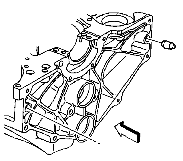 8. Remove the engine block right rear oil gallery plug.