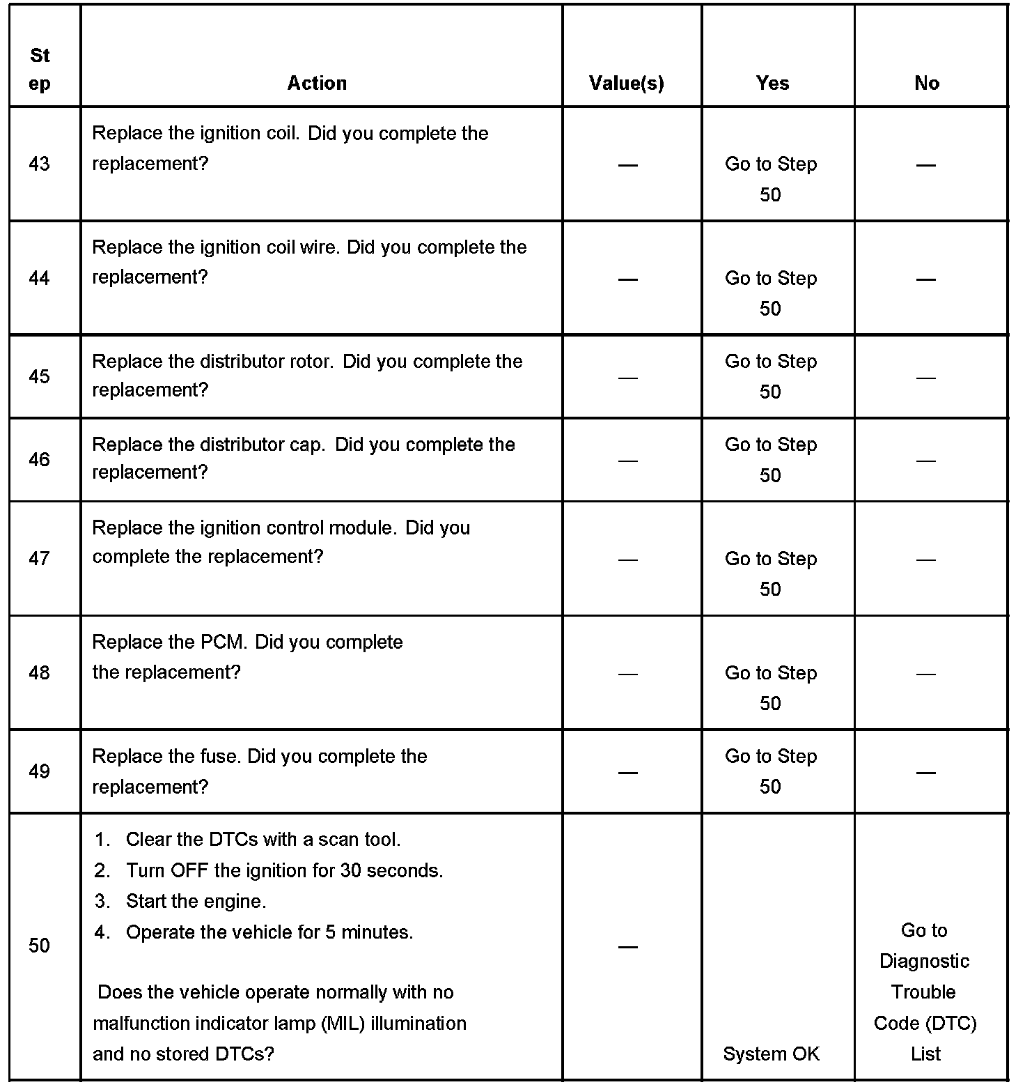 The Distributor Ignition (DI) System Diagnostic Table assumes the following conditions:
