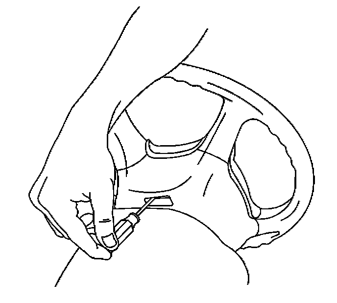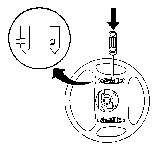 6. Insert a flat-bladed tool into the remaining access holes and push the leaf spring to release the notched pin that retains the inflator module.