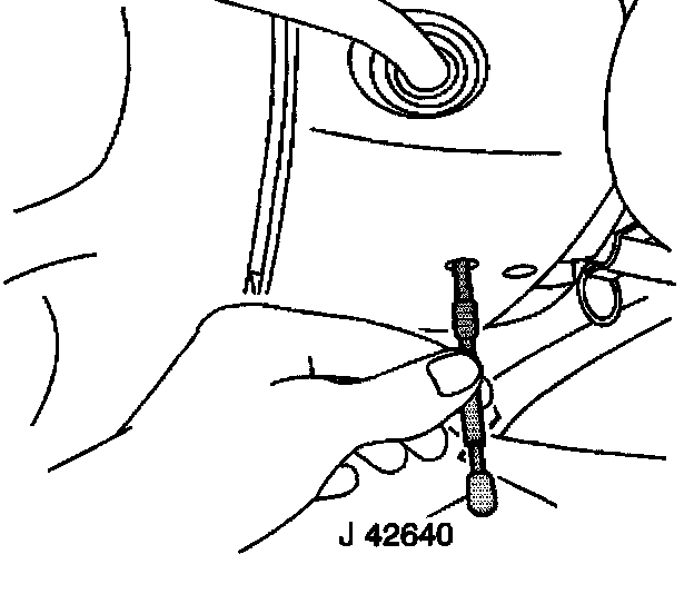 3. Lock the steering column through the access hole in the lower steering column trim cover using the J42640.