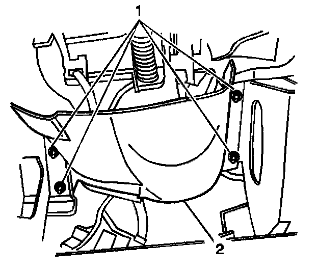 3. Install the nuts (1) retaining the knee bolster deflector to the instrument panel.