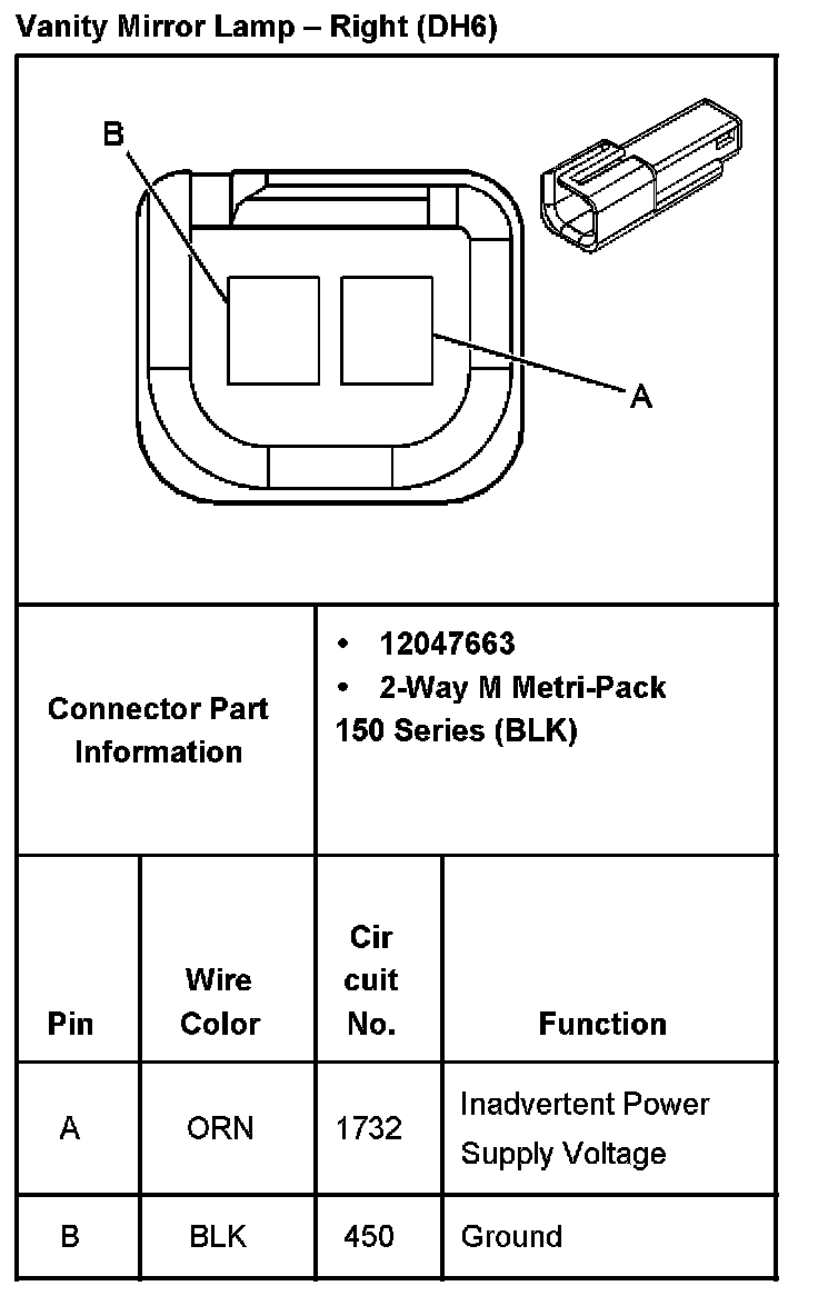 Vanity Mirror Lamp - Right (With RPO Code DH6):
