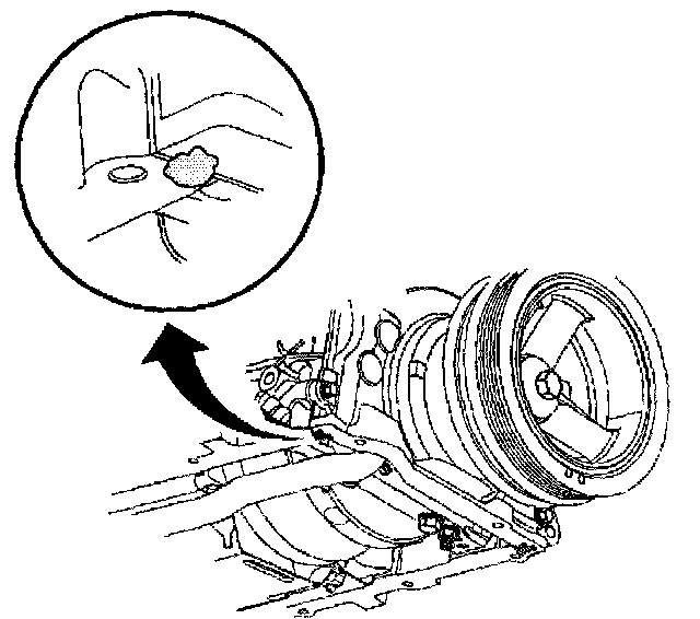 1. Apply a 5 mm (0.20 inch) bead of sealant GM U.S. P/N 12378190, or equivalent 20 mm (0.80 inch) long to the oil pan to engine block junction.
