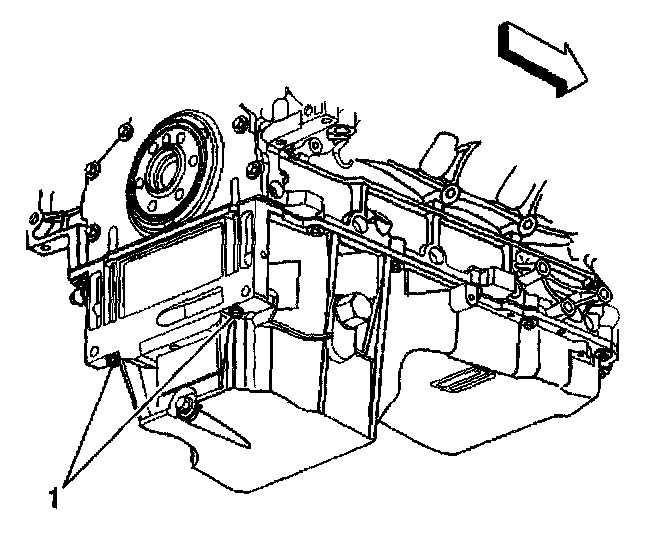 4. Install the oil pan-to-rear cover bolts (1) until snug. Do not overtighten.