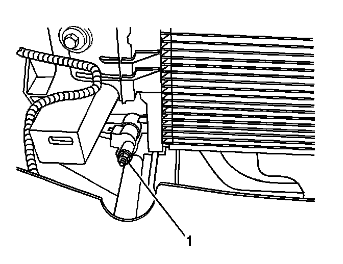7. Disconnect the electrical connector from the outside air temperature sensor (1).