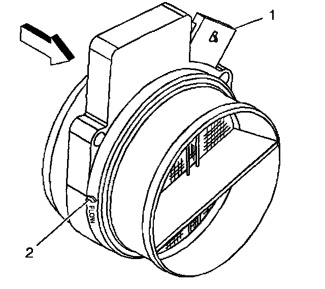 1. Locate the air flow direction arrow (2) on the MAF/IAT sensor.