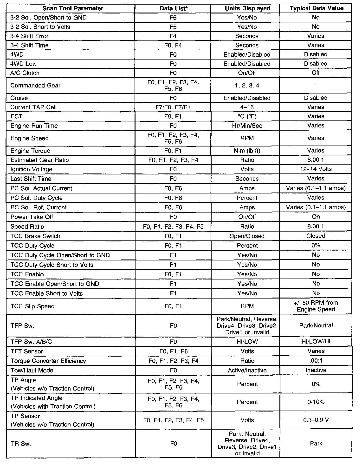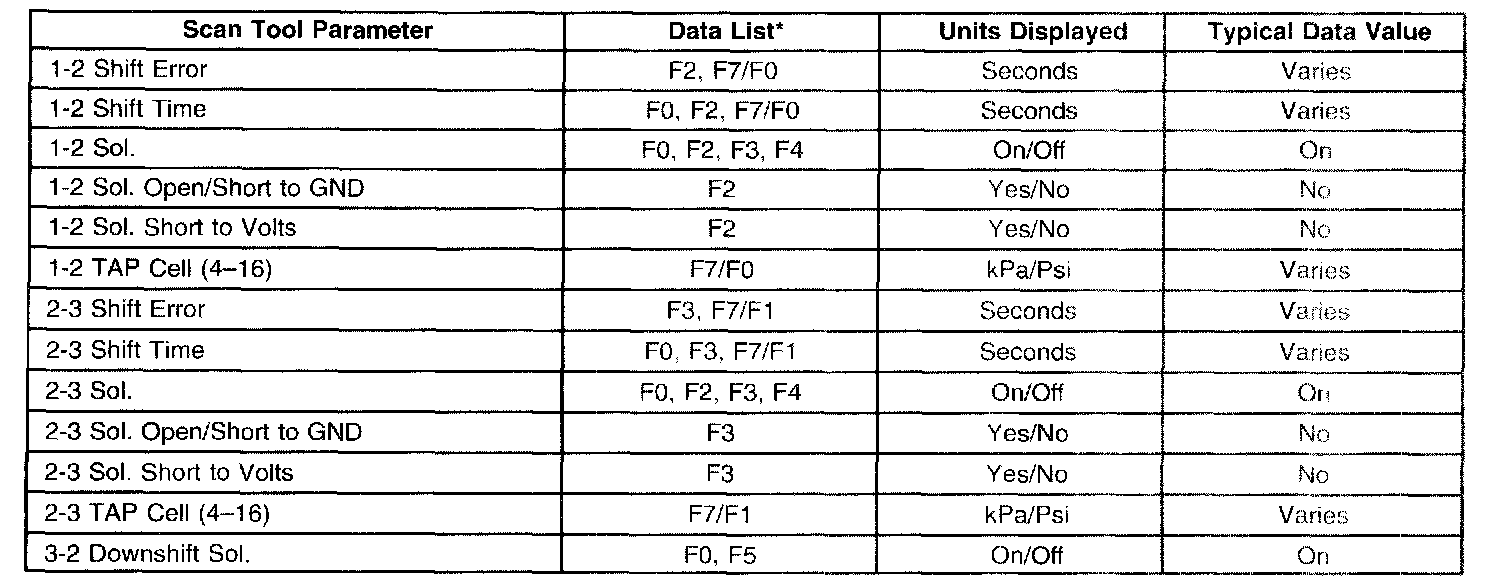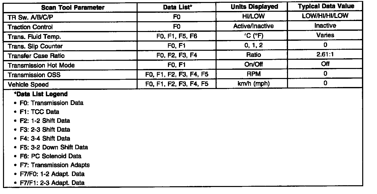 Transmission Scan Tool Data List