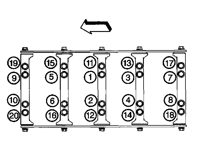 Crankshaft Bearing Cap Bolts - Outer Bolts - First Pass in Sequence 20 Nm (15 ft. lbs.)