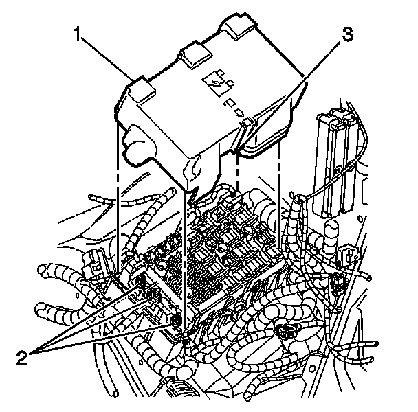 7. Install the junction block cover (1) the tabs (3) should lock.