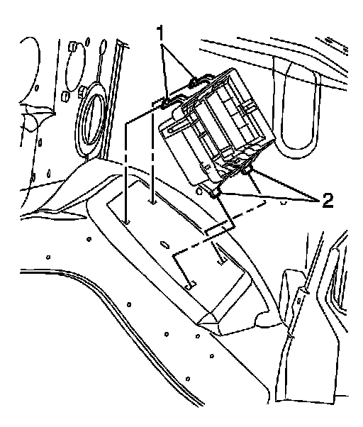 6. Remove the junction block base by pressing tabs (1) then slide tabs (2) out.
