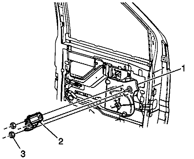 2. Install the nuts (3) in order to retain the power window motor (2) to the front door module (1).