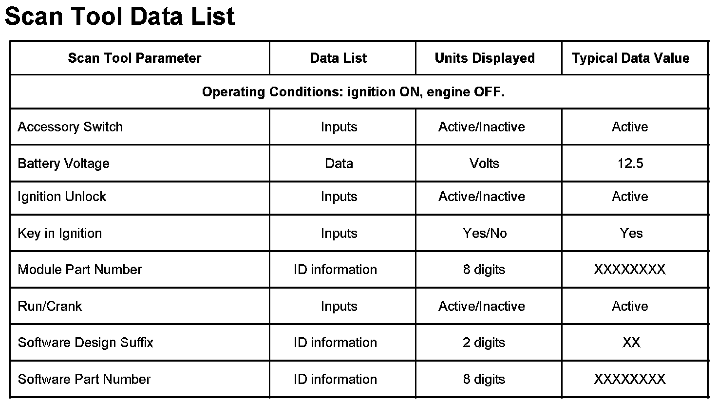 Scan Tool Data List: