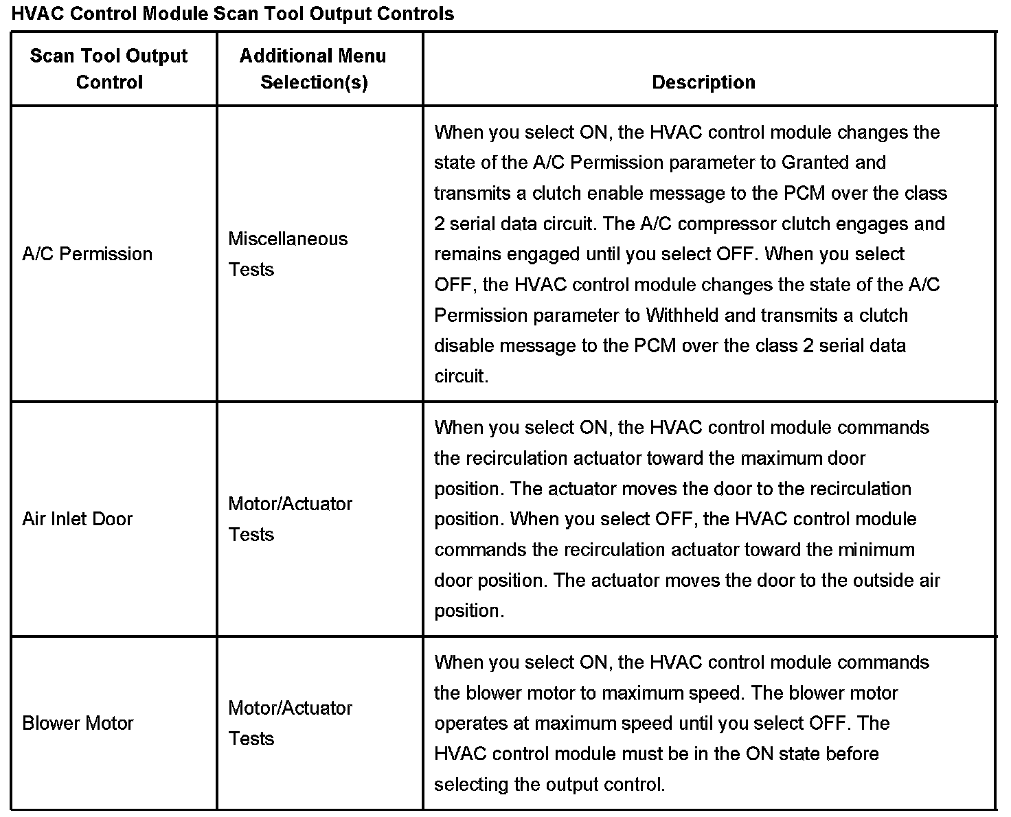 Scan Tool Output Controls - HVAC Control Module