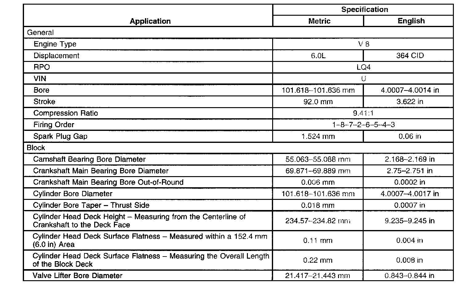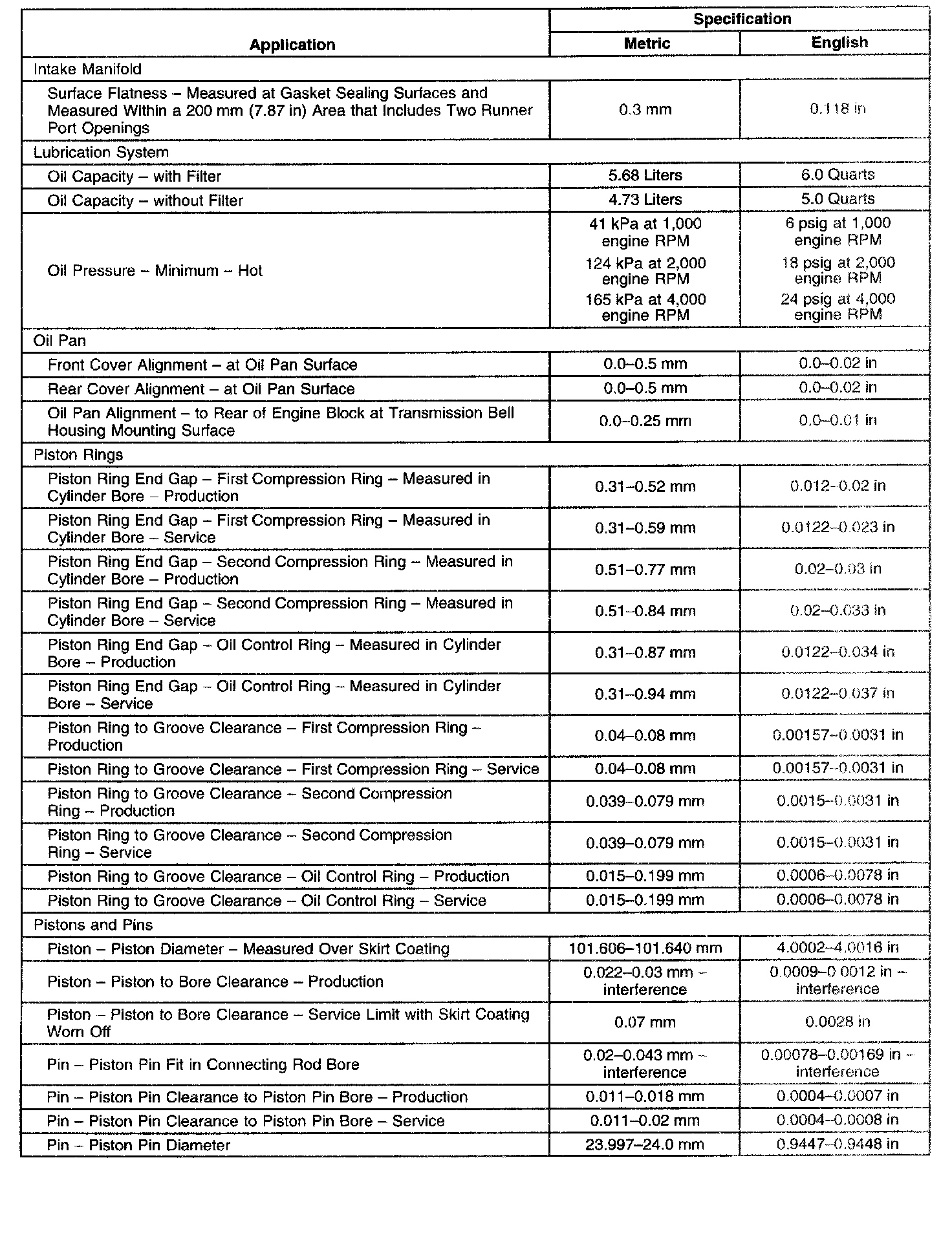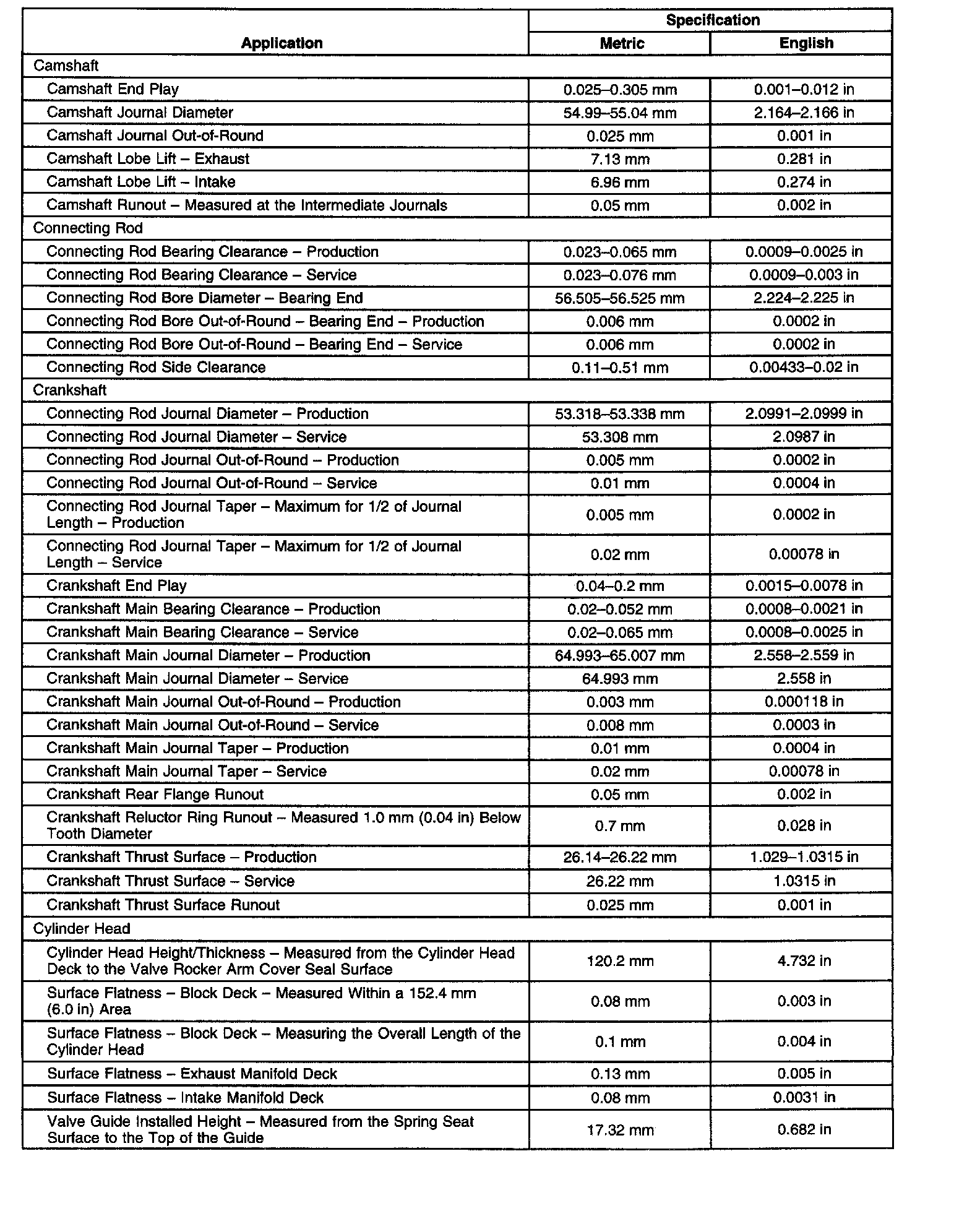 Engine Mechanical Specifications