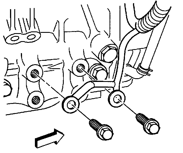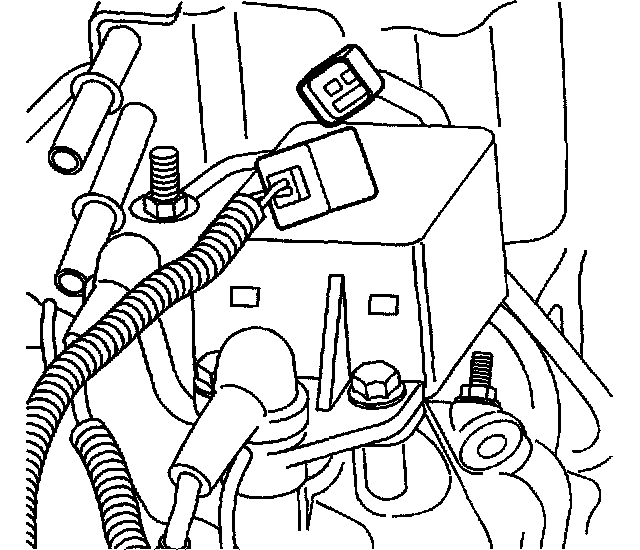 6. Remove the two engine block ground bolts from the right front side of the engine.