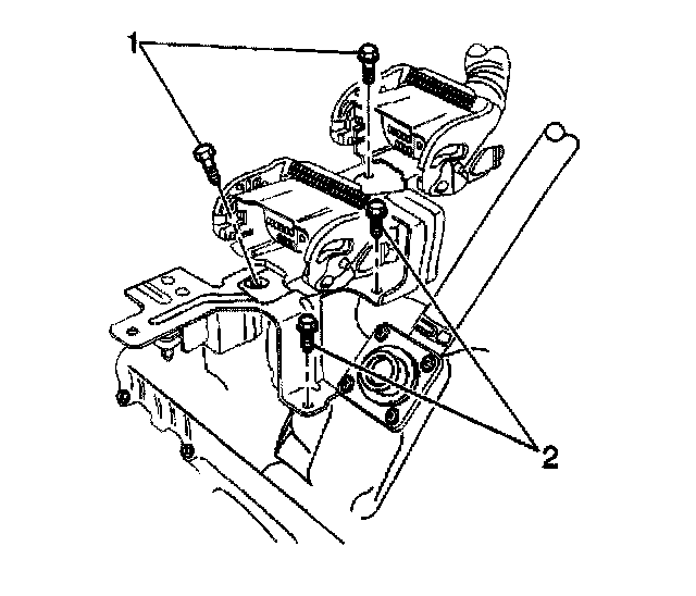 7. Remove the main engine harness connector hold down bolts (1, 2).