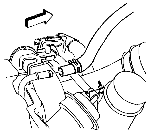 9. Remove the turbocharger coolant inlet hose from the turbocharger.