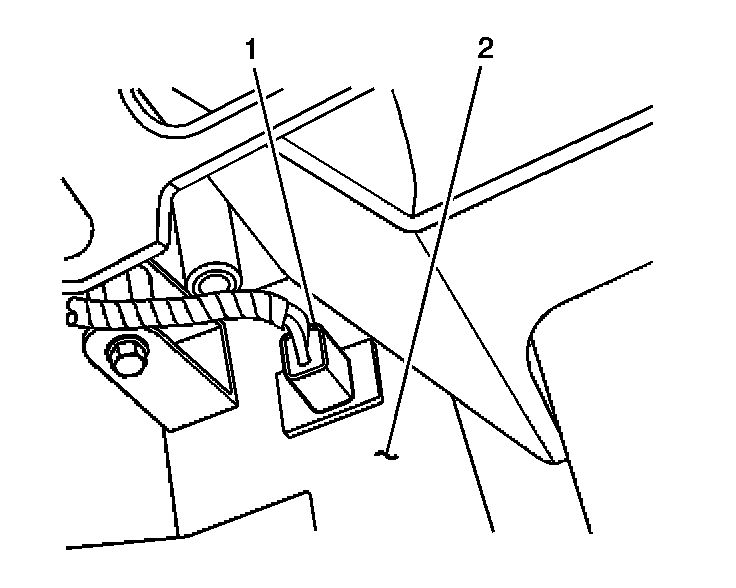 1. Install the lower left air temperature sensor (1) to the HVAC module (2).