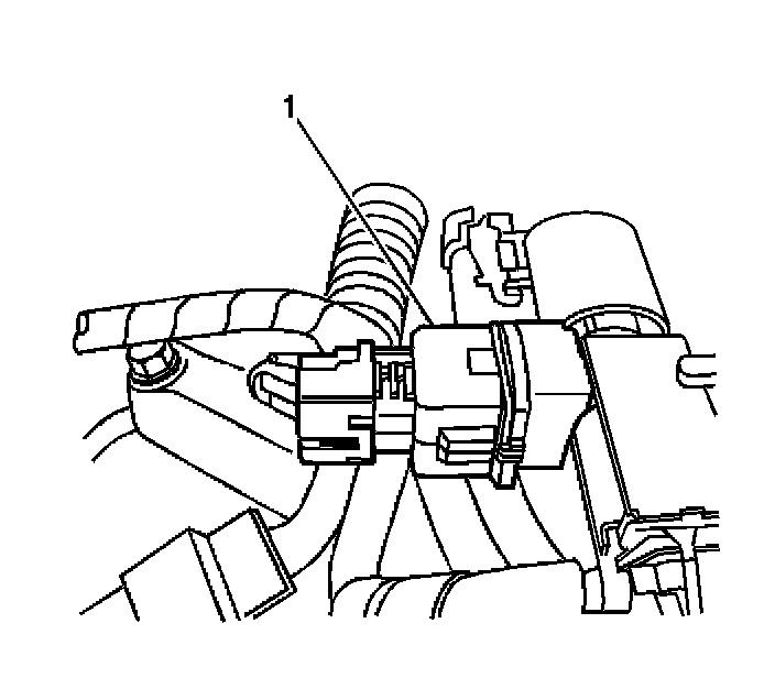 2. Disconnect the exhaust gas recirculation (EGR) valve vent solenoid electrical connector (1).