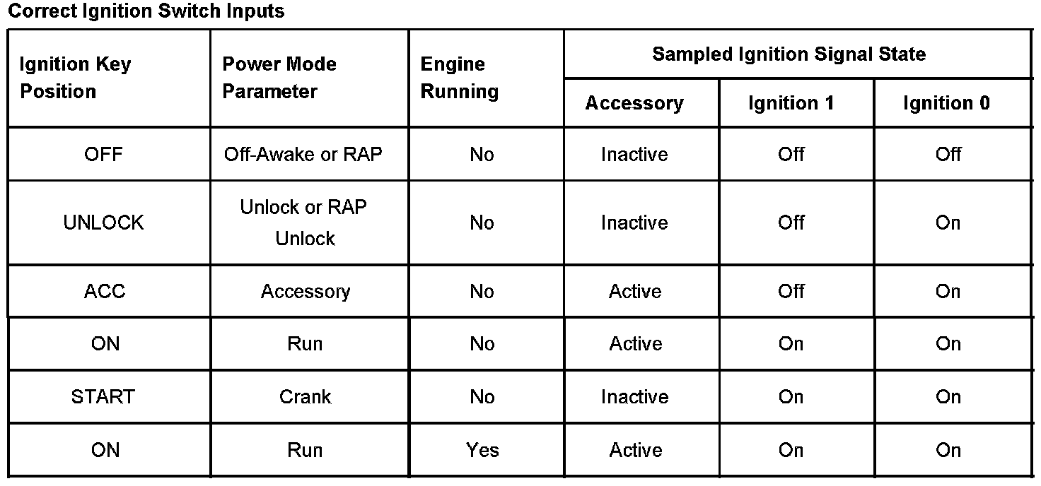 On vehicles that have several control modules connected by serial data circuits, one module is the power mode master (PMM). On this vehicle the PMM is the Body Control Module (BCM). The BCM uses 3 signals from the ignition switch. These are the Ignition 0, Ignition 1, and Accessory.