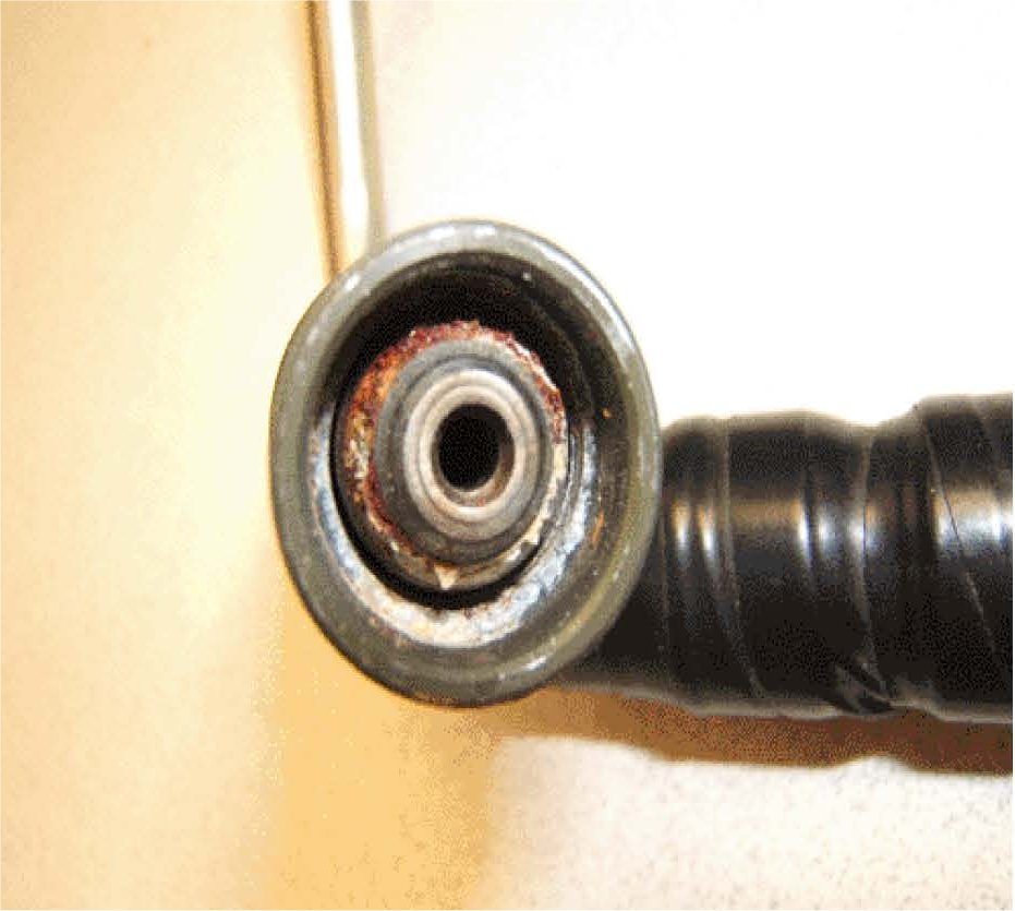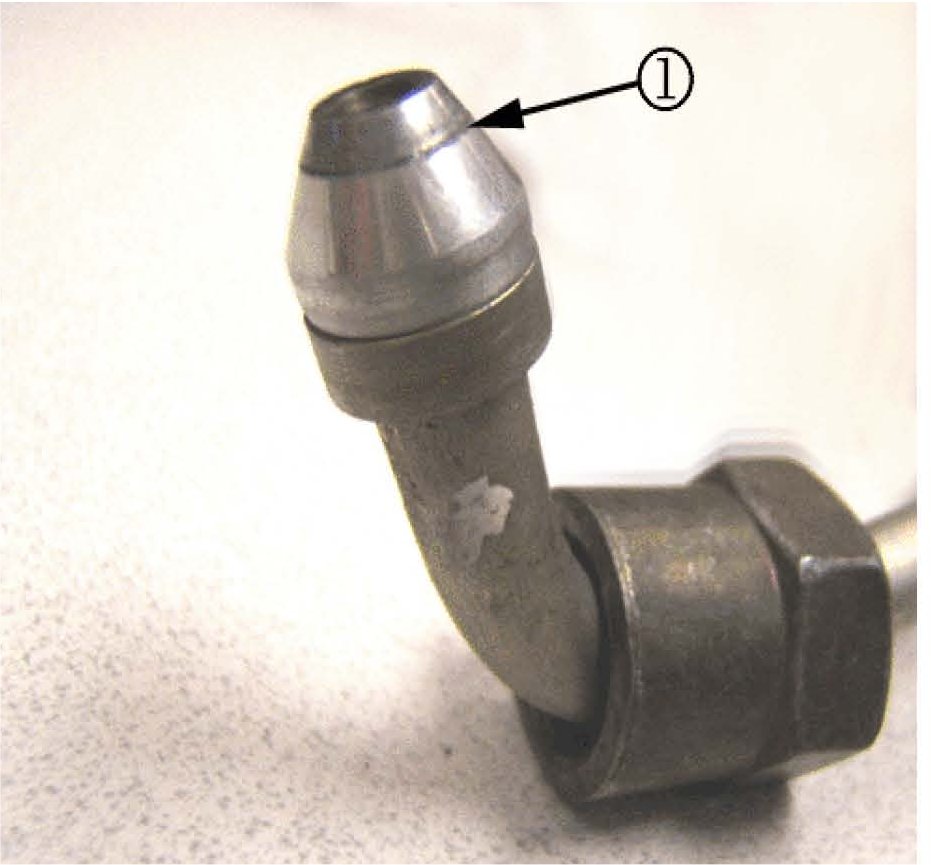 5. Inspect the fuel injector high-pressure line for excessive corrosion, scale or rust to the sealing surface as shown.