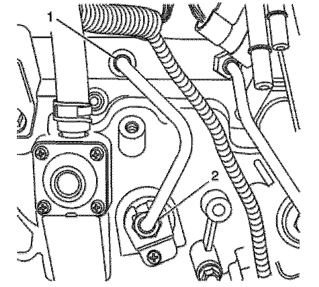2. Spray Super Lube, P/N 12346241 (in Canada, P/N 10953474), or a lithium grease equivalent, between the fuel injector line and fittings (1, 2) to assist in containing any debris during removal.