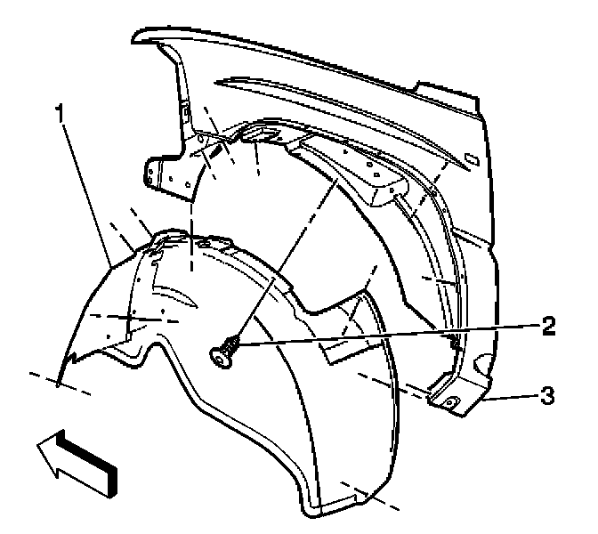7. If equipped with 4WD, install the right fender wheelhouse inner panel (1).