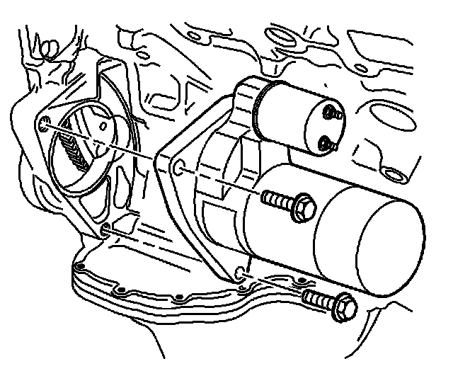 7. Remove the starter motor bolts.