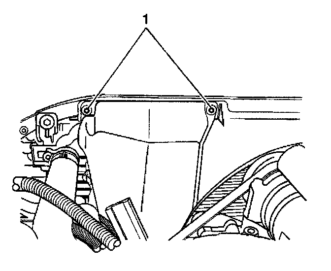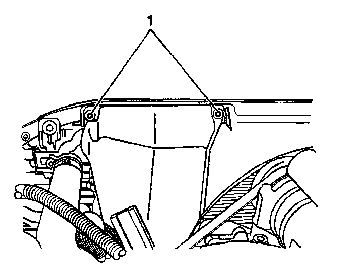 4. Install the TCM cover bolts (1) to the radiator shroud.