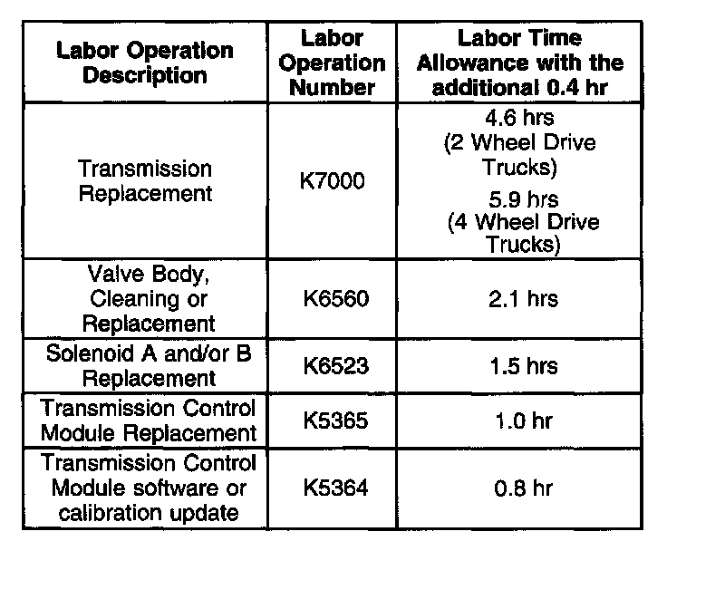 This labor operation table is submitted for your use when servicing these vehicles under warranty. Each of the labor codes listed below will have an additional 0.4 hr added to the previously published time in the next labor time revision.