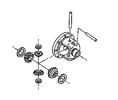2. Remove the differential side gears and the side gear thrust washers. Mark the pinion gears and thrust washers top and bottom and the differential side gears and thrust washers left and right.
