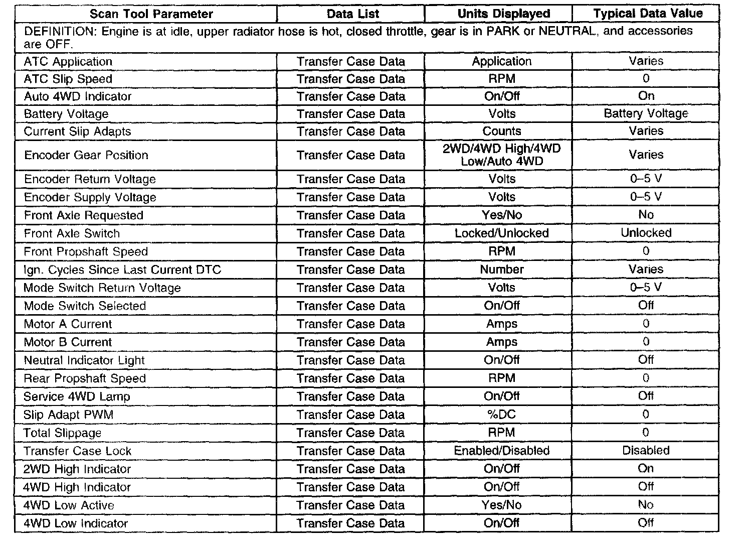 Scan Tool Data List