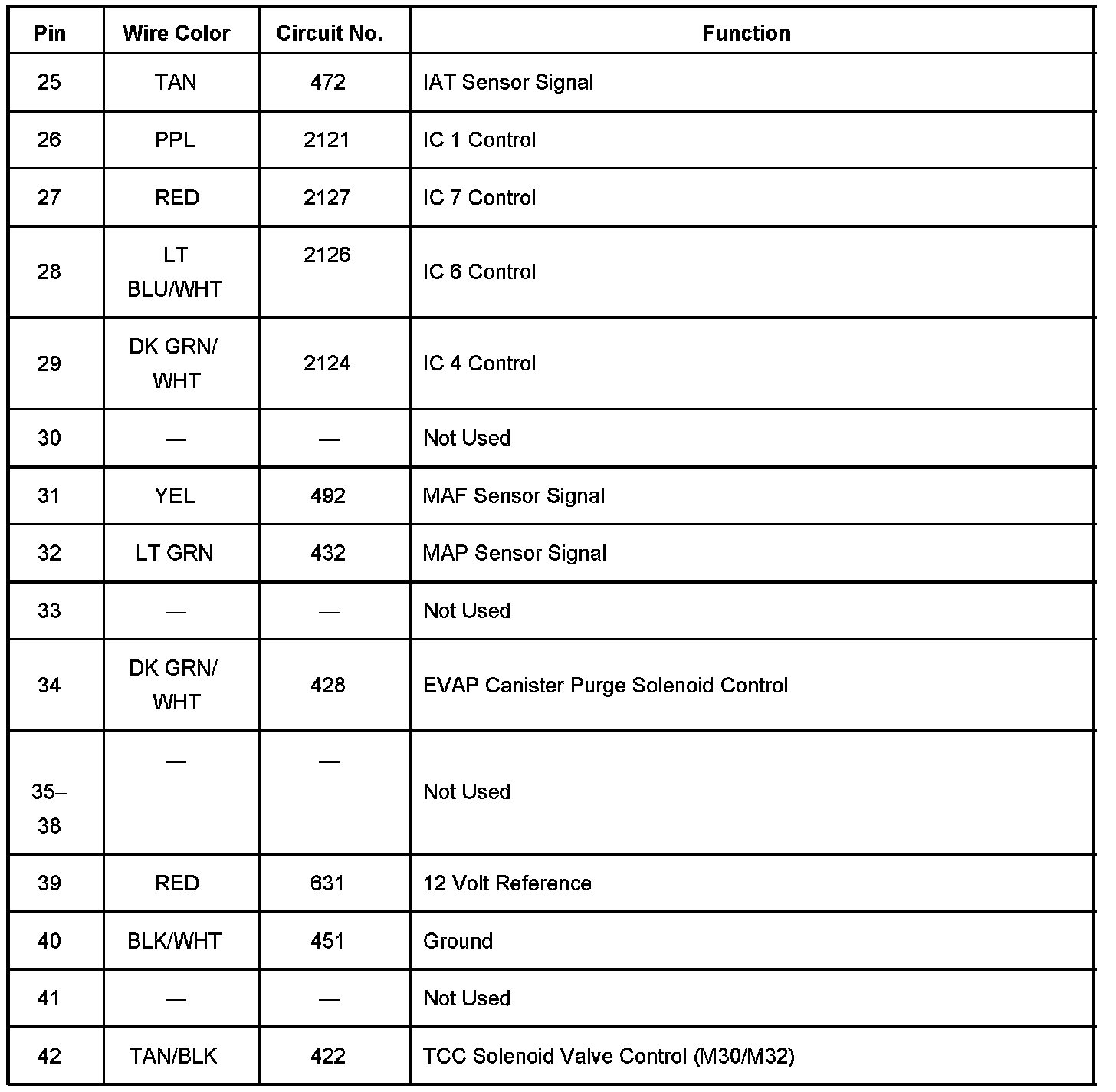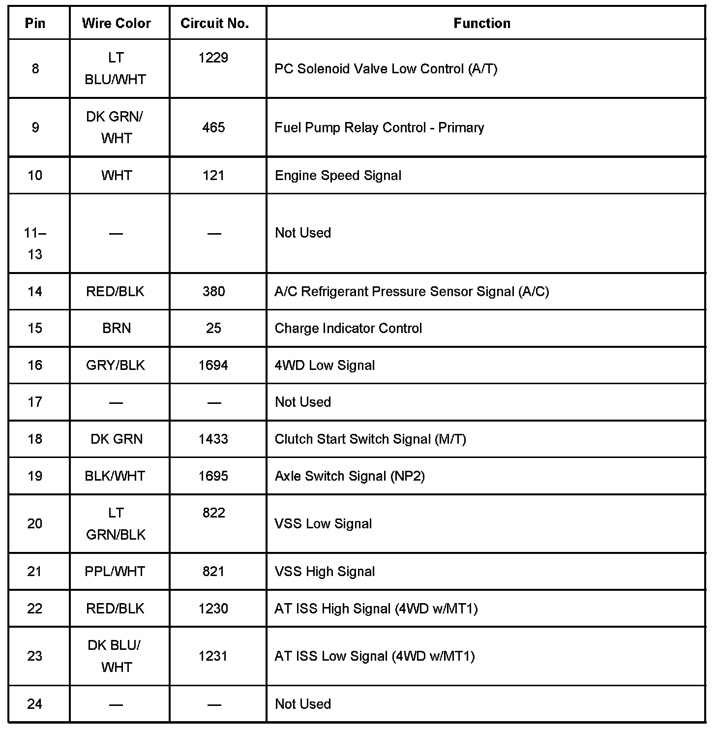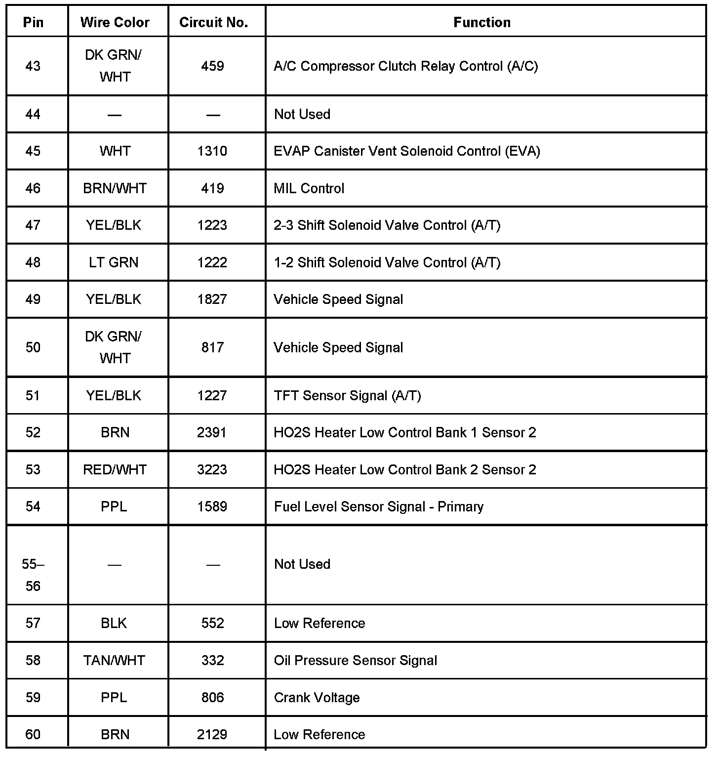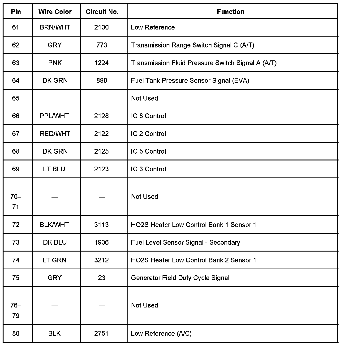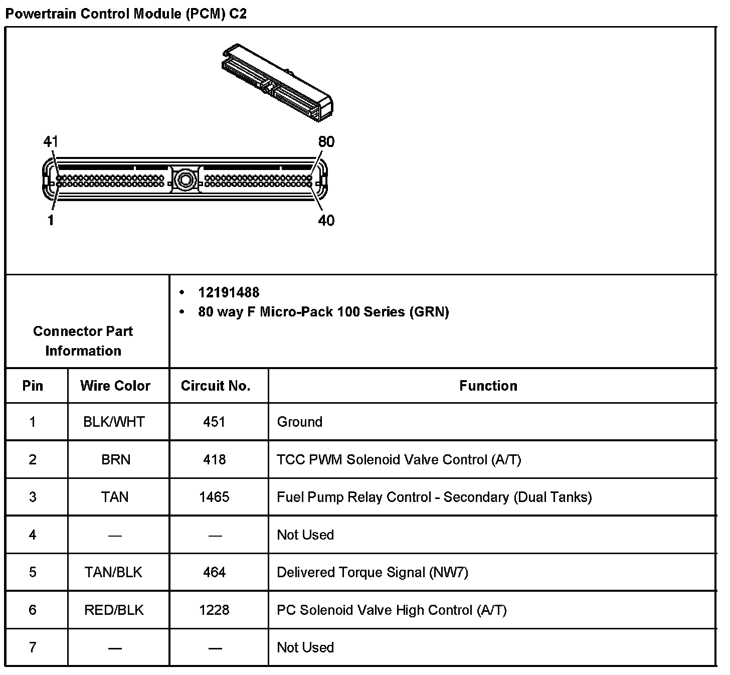 Powertrain Control Module (PCM) C2 Pins 22 - 80: