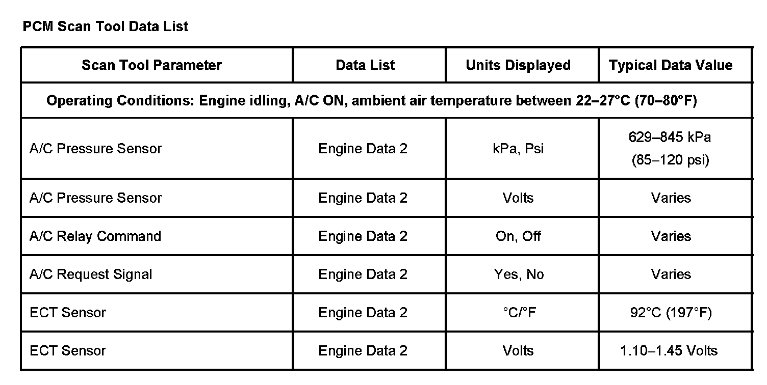 Scan Tool Data List - Powertrain Control Module (PCM)